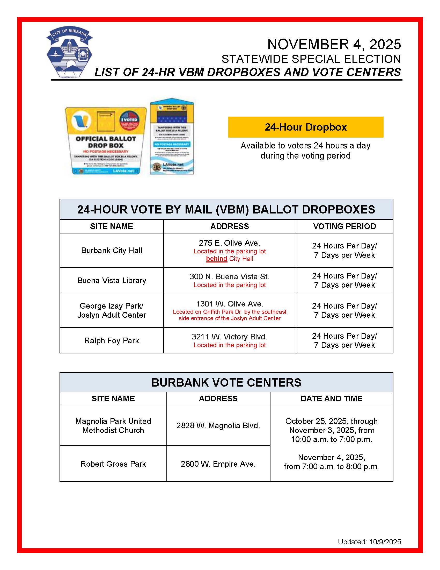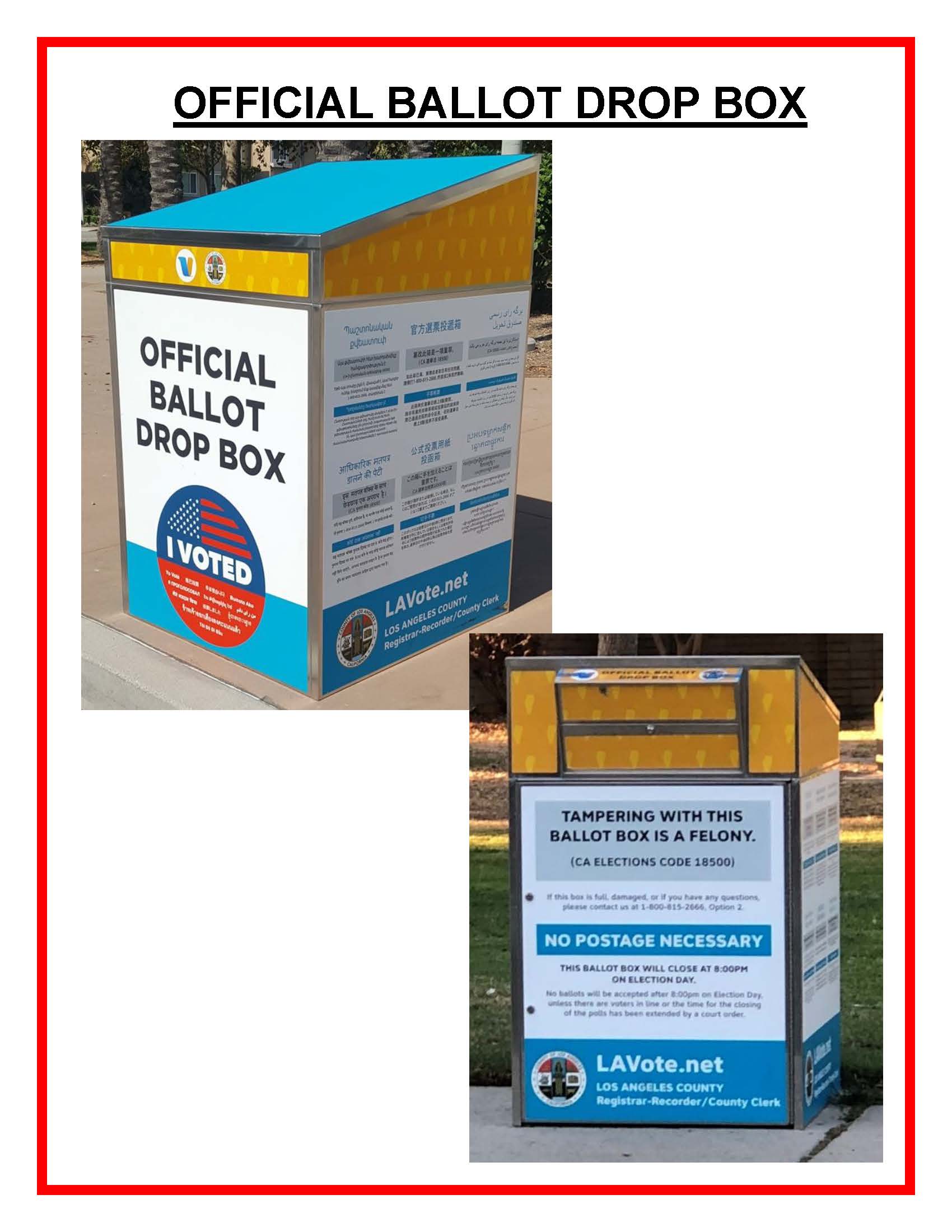 (562) 716-5427 [email protected] - If ballots or the VBM Drop Boxes are compromised or there are any incidents involving law enforcement, please contact the VBM Drop Box Program Manager at (562) 277-2123