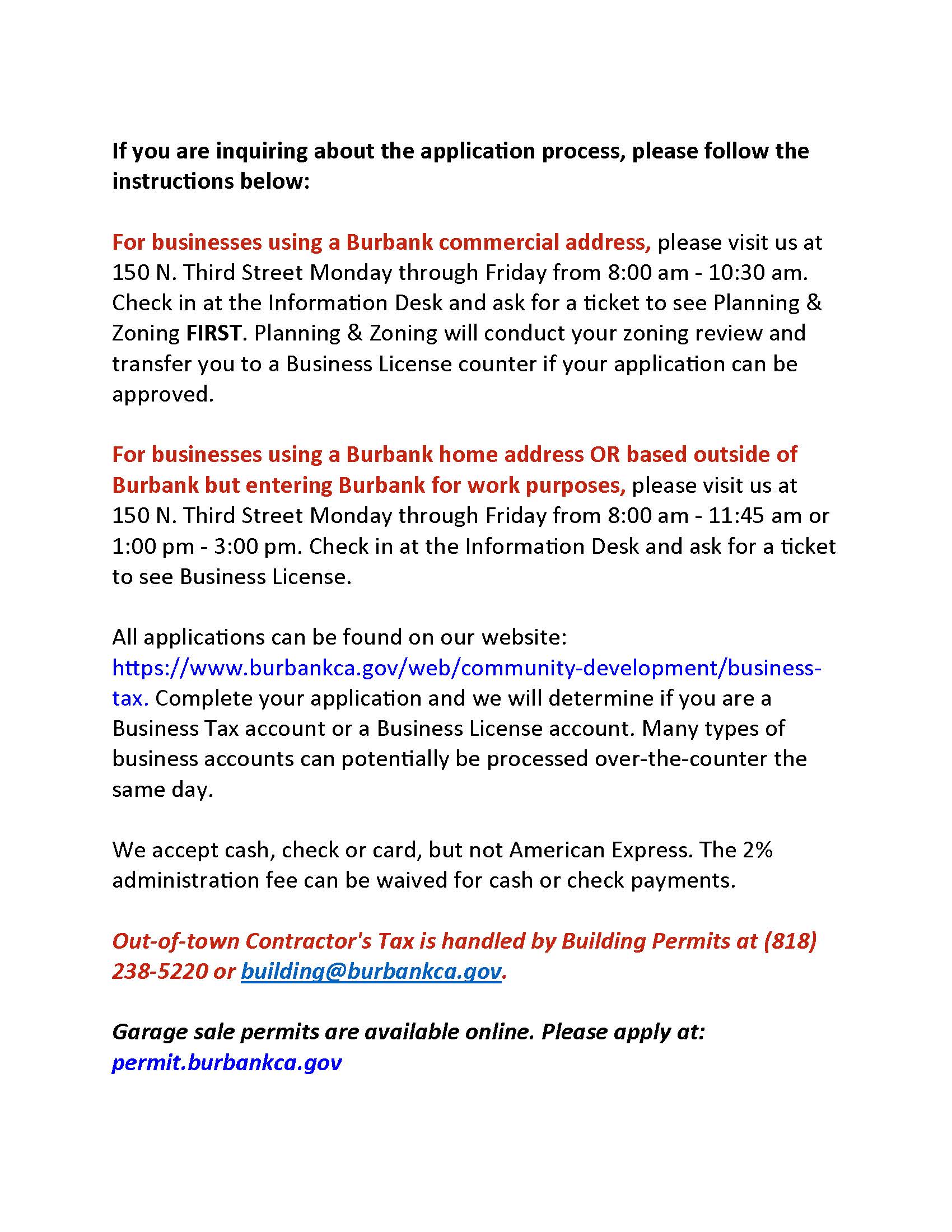 Business affected by this requirement need to complete a special compliance application (PDF) and return it to Building & Safety Division.
