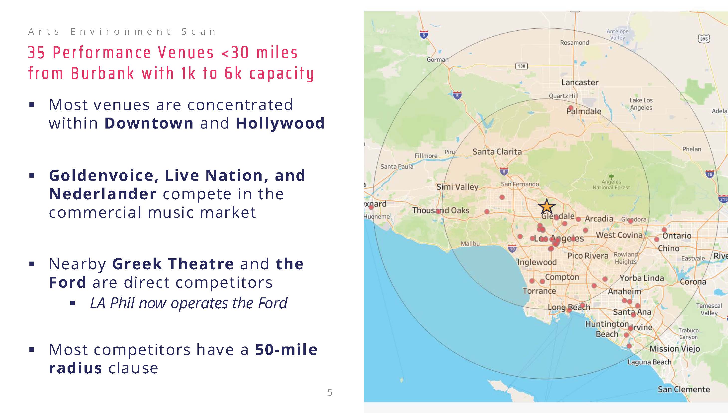There are 35 venues within 30 miles that have a capactiy between 1,000 and 6,000 seating capacity, which informs the programming at the Starlight Bowl.