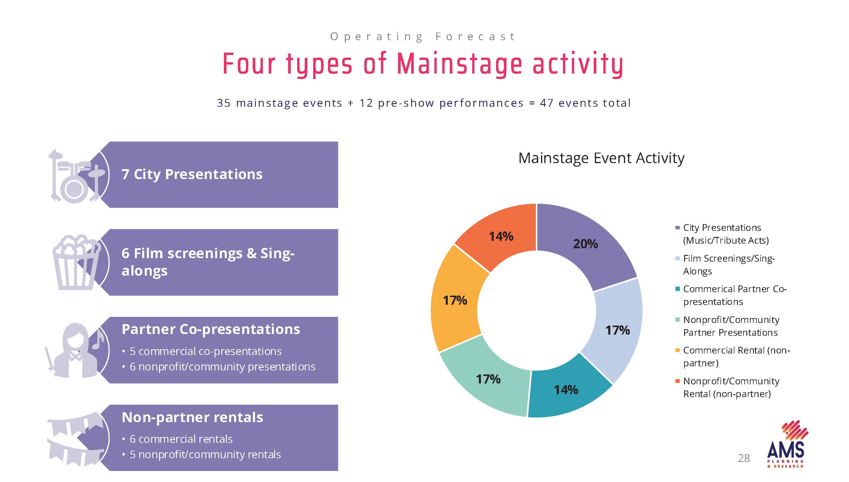 With a focus on programming and community balance, four types of programs are recommended in a restrained capacity of just 35 shows.